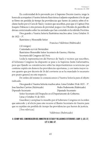 Dios guarde á Vuestra Señoría muchos años. Lima Octubre 29 de 1822 – 3°.