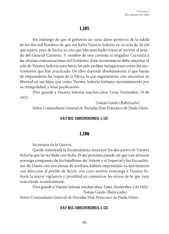 Dios guarde a Vuestra Señoría muchos años. Lima, Noviembre 2 de 1822.