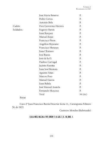 Cavo 2° Juan Francisco Barria Desertor fecha 11,, Carampoma Febrero