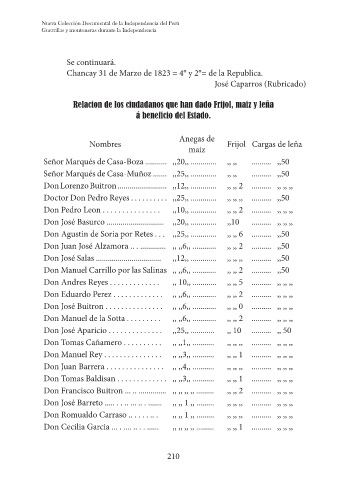 Chancay 31 de Marzo de 1823 = 4° y 2°= de la Republica.