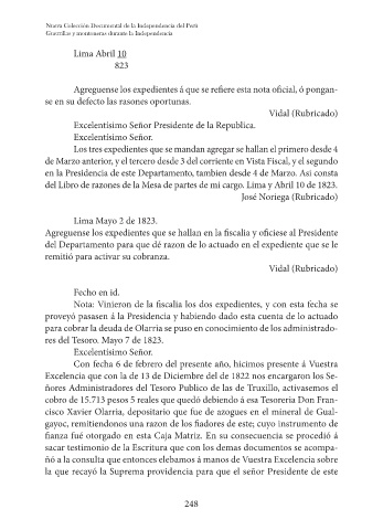 del Libro de razones de la Mesa de partes de mi cargo. Lima y Abril 10 de 1823.
