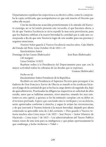 del Estado del Perú. Lima Octubre 10 de 1823 = 4º.