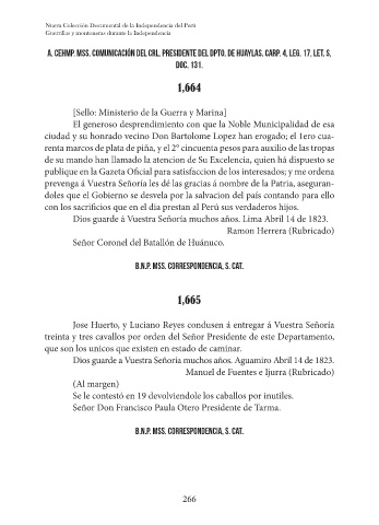 A. CEHMP. Mss. Comunicación del Crl. Presidente del Dpto. de Huaylas. Carp. 4, Leg. 17, Let. S,
