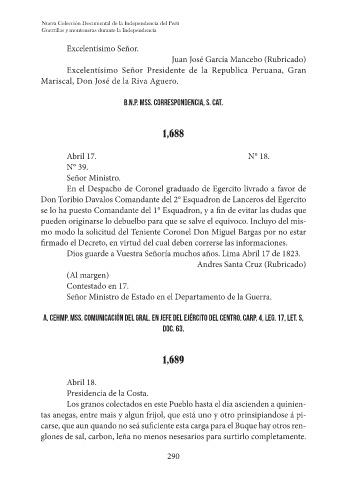 Dios guarde a Vuestra Señoría muchos años. Lima Abril 17 de 1823.
