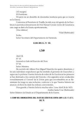 Dios guarde a Vuestra Señoría muchos años. Lima Abril 28 de 1823.