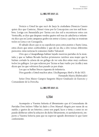 Dios guarde a Usted muchos años. Llocllapampa Abril y 30 de 1823.