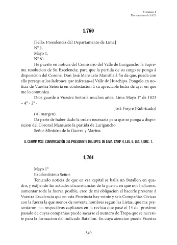 A. CEHMP. Mss. Comunicación del Presidente del Dpto. de Lima. Carp. 4, Leg. 6, Let. F, Doc. 1.