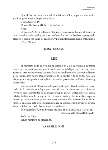Dios guarde a Vuestra Señoría muchos años. Lima Mayo 7 de 1823.