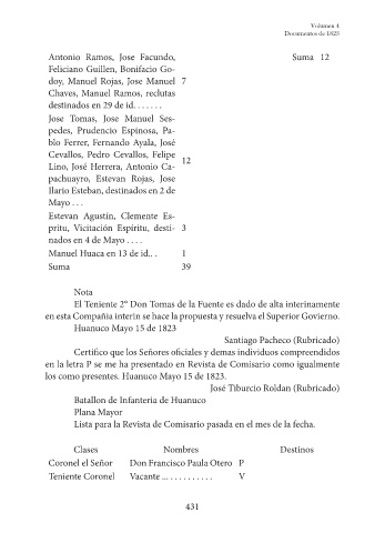 Huanuco Mayo 15 de 1823
