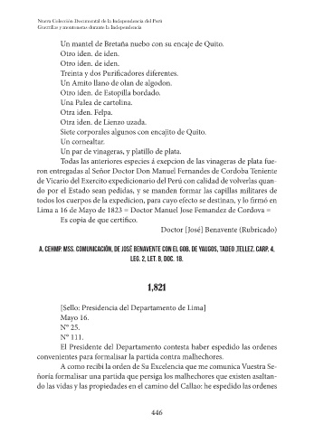 Lima a 16 de Mayo de 1823 = Doctor Manuel Jose Femandez de Cordova =