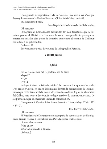 deseo y ha menester la Nacion Peruana. ChiIca 16 de Mayo de 1823.