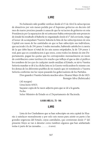 Dios guarde á Vuestra Señoría muchos años. Huaraz Mayo 26 de 1823.