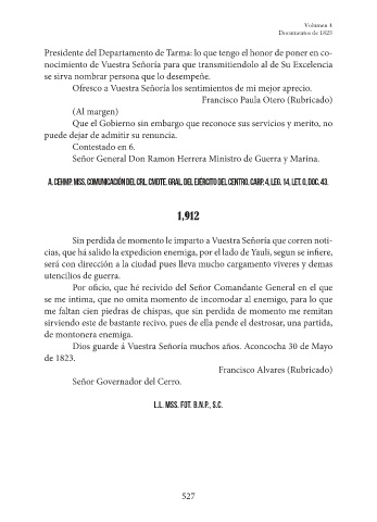 cias, que há salido la expedicion enemiga, por el lado de Yauli, segun se infiere,