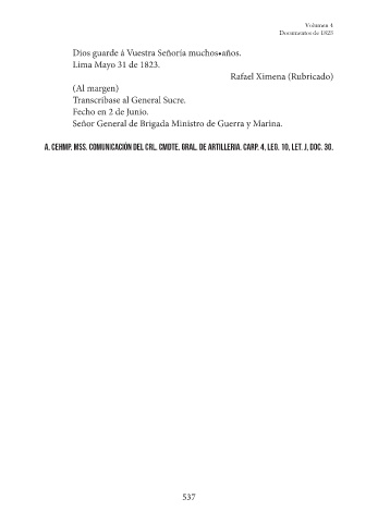 A. CEHMP. Mss. Comunicación del Crl. Cmdte. Gral. de Artilleria. Carp. 4, Leg. 10, Let. J, Doc. 30.