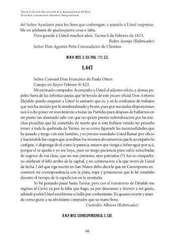 Dios guarde á Usted muchos años. Tarma 8 de Febrero de 1823.