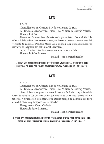 tador del Perú, con Cuartel General en Chancan. Carp. 5. Leg. 17, Let. S, Doc. 17.