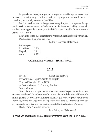 A. CEHMP. Mss. Comunicación del Gral. Luis José de Orbegoso. Carp. 5, Leg. 14, Let. O, Doc. 40.
