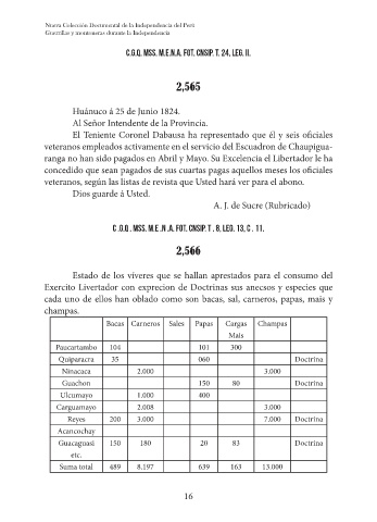 Huánuco á 25 de Junio 1824.