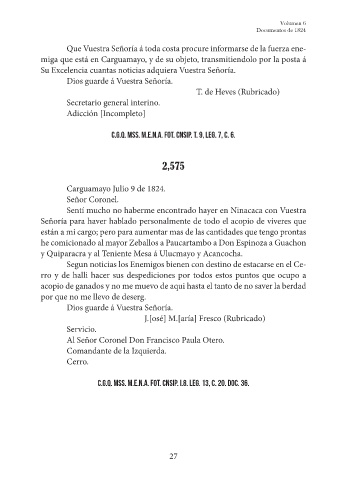 Carguamayo Julio 9 de 1824.