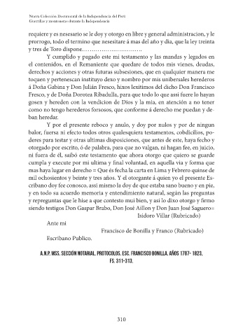 A.N.P. Mss. Sección Notarial. Protocolos. Esc. Francisco Bonilla. Años 1787- 1823,
