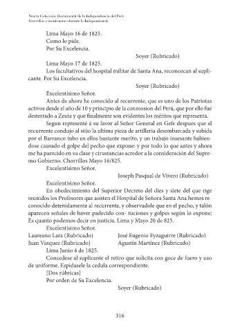 Es quanto podemos decir en justicia. Lima y Mayo 20 de 825.