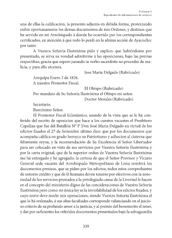 Capellan que fue del Batallón N° l° Don José Maria Delgado en virtud de los