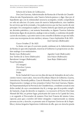 como una recompensa de mis méritos y atrasos. Cuzco Septiembre l9 de 1825.
