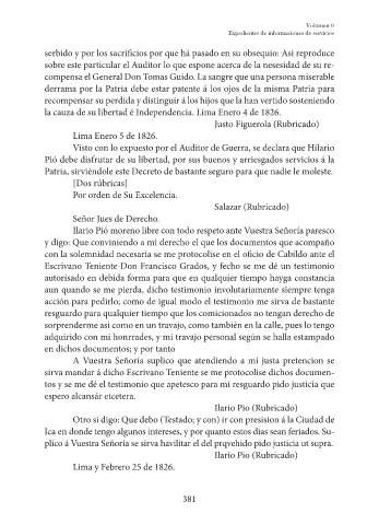 la cauza de su libertad é Independencia. Lima Enero 4 de 1826.