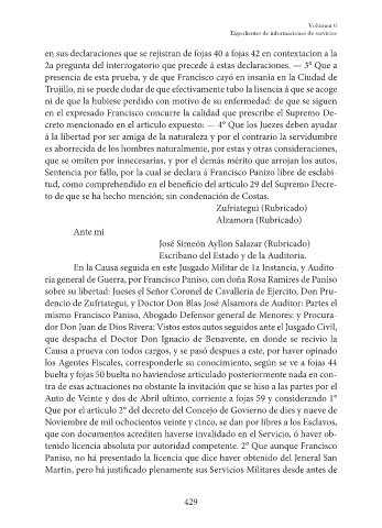 Sentencia por fallo, por la cual se declara á Francisco Panizo libre de esclabi-