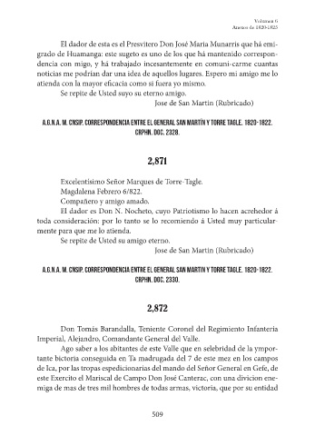 A.G.N.A. m. CNSIP. Correspondencia entre el General San Martin y Torre Tagle. 1820-1822.