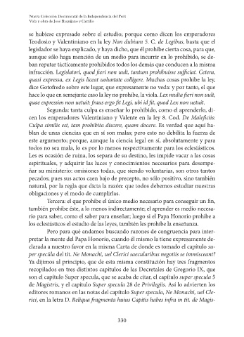 los eclesiásticos el estudio de las leyes, también les prohibe la enseñanza.
