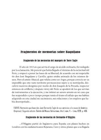 FUENTE: Narración que hace don José Bernardo Tagle de sus servicios a la causa de América