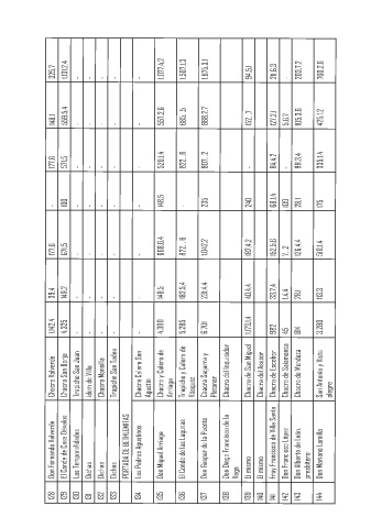 Chacra Valverde Chacra San Borja Trapiche San Juan Idem de Villa Chacra Mansilla Trapiche San Tadeo Chacra Calera San Agustín Chacra y Calera de Arriaga Trapiche y Calera de Vásquez Chacra Sagarra y Platanar Chacra del Inquisidor Chacra de San Miguel Chacra del Asesor Chacra de Escobar Chacra de Salamanca Chacra de Mendoza San Antonio y Vista