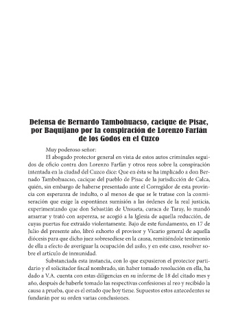 Defensa de Bernardo Tambohuacso, cacique de Pisac,