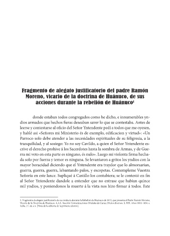 1. Fragmento de alegato justificatorio de su conducta durante la Rebelión de Huánuco de 1812, que presenta el Padre Ramón Moreno,