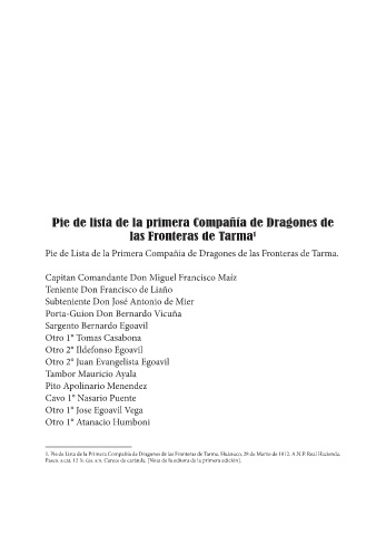 1. Pie de Lista de la Primera Compañía de Dragones de las Fronteras de Tarma. Huánuco, 28 de Marzo de 1812. A.N.P. Real Hacienda.