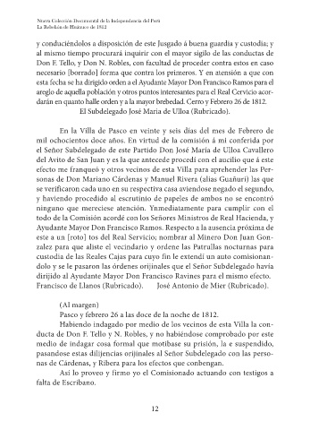 Pasco y febrero 26 a las doce de la noche de 1812.