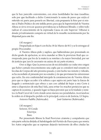 ta a la Real Carcel de Corte donde seran menos sus penalidades, incertandose