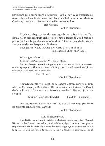 Cardenas; Lima Marzo dies y ocho de mil ochocientos dose.