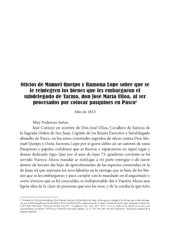 ron por el Subdélegado que fue de Tarma, Don José María Ulloa, de•resultas de la Causa formada de oficio sobre Pasquines sediciosos.
