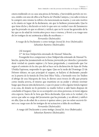 Febrero último, en que principió el saqueo, se hallava el declarante parado