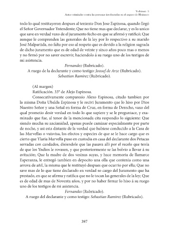 la misma Doña Ubalda Espinosa y le recivi Juramento que lo hiso por Dios