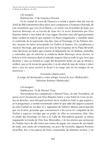 Abril de Mil ochosientos dose años, hice compareser a Francisco Estrada, de