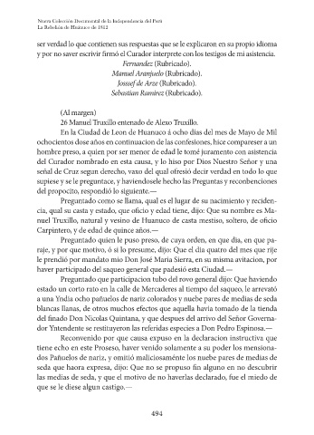 nuel Truxillo, natural y vesino de Huanuco de casta mestiso, soltero, de oficio