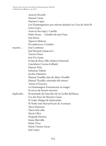 Los Huamanguinos que estavan alojados en Casa de doña Pe