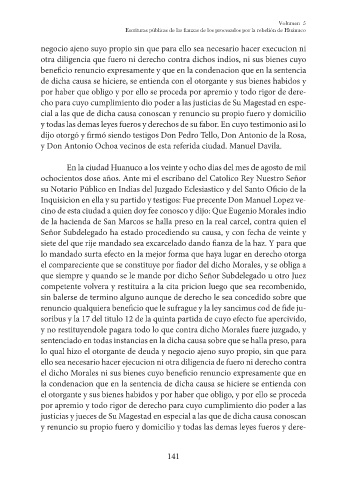 el dicho Morales ni sus bienes cuyo beneficio renuncio expresamente que en