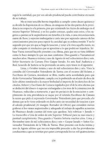 Expediente seguido ante la Real Audiencia de Lima sobre el pago de costas