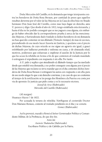 Demanda de Mercedes Castillo a Doña Rosa Urbina y sus hijos