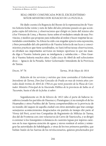 Docm. N° 76 Tarma, 30 de Mayo de 1814