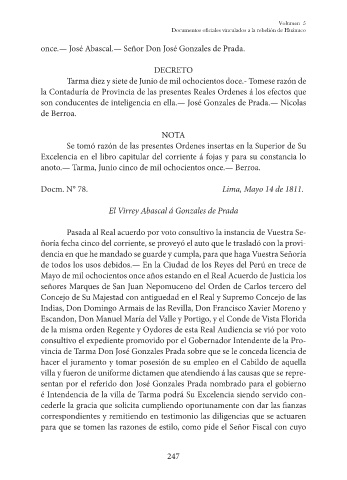 Docm. N° 78. Lima, Mayo 14 de 1811.
